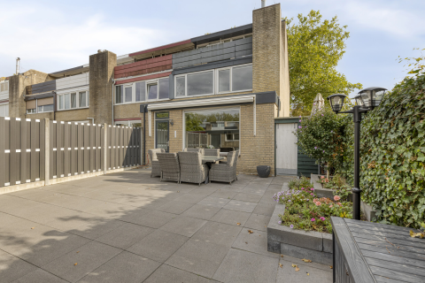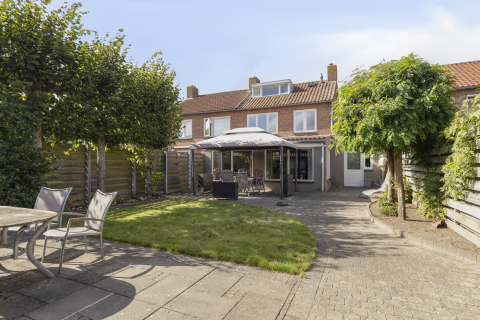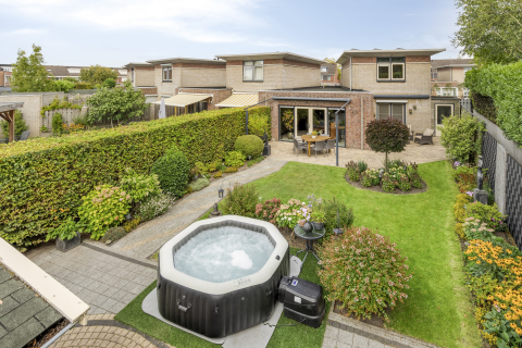 De achtertuin is ruim, kindvriendelijk én groen. Door de ligging op het westen geniet je hier van middag- en avondzon – perfect voor lange zomeravonden. Het terras bij de woning is ideaal voor een loungeset of buitentafel, en de combinatie van sierbestrating en groene borders zorgt voor een fijne sfeer. En wil je nog meer ruimte? Dan kun je eenvoudig een stuk van de zijtuin bij de achtertuin trekken.